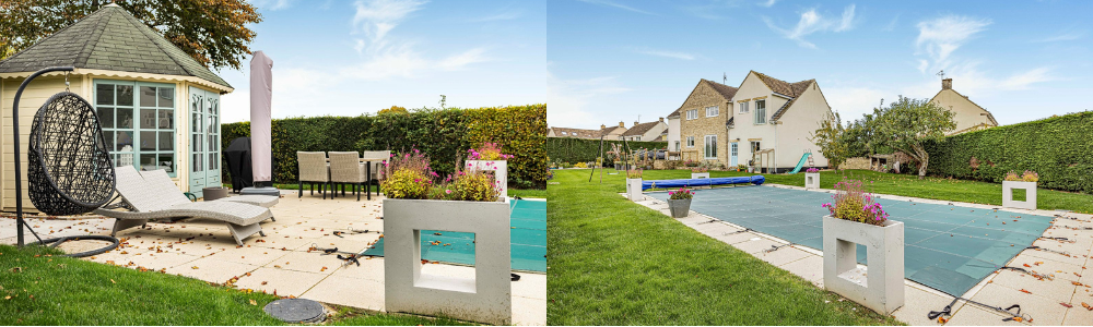 With gentle steps and no deep end, it’s perfect for both relaxation and family fun. A fully powered summer house nearby offers endless possibilities — garden bar, office, gym, teen hangout, or tranquil reading space overlooking the pool.